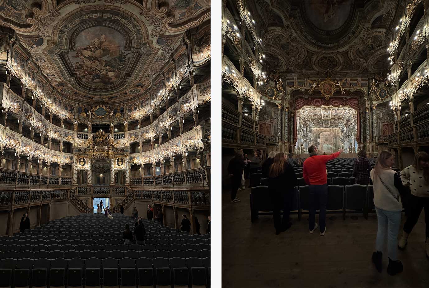 Den kulturellen Abschluss am Samstagmittag bildete der bestens geführte Besuch des berühmten Markgräflichen Opernhauses. Einmal direkt in der Fürstenloge dem Absolutismus nachspüren, auf der Bühne stehend die Fassadenkunst der gemalten Szenerien bestaunen und im modernen Museum selbst die Kulissen der barocken Theaterkunst in Bewegung setzen – manch einer empfand diesen Schluss- als Höhepunkt.