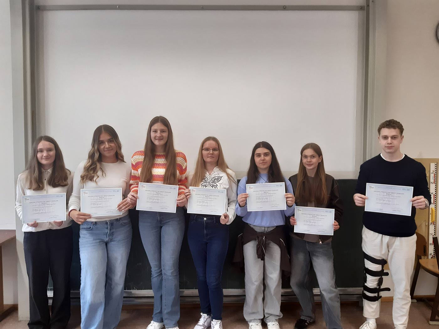Sechs Schülerinnen und ein Schüler der letztjährigen 10. und 11. Jahrgangsstufe konnten vor Kurzem ihr DELF-Diplom Niveau B1 in Empfang nehmen. Alle Teilnehmerinnen und Teilnehmer erzielten hervorragende Ergebnisse, nachdem sie sich bis zum Halbjahr im Wahlkurs DELF auf die Prüfungen vorbereitet hatten.