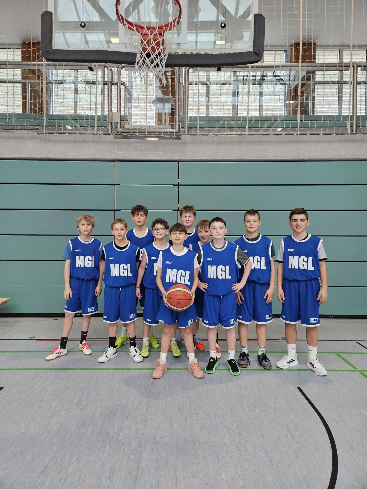 Die Reihenfolge der Spieler von links nach rechts: Janne Schleupner, Nepomuk Bechmann, Julian Treubel, Jakov, Tasevski, Michael Schwarz (Spielmacher und Kapitän der Mannschaft), Julian Erben, Jakob Zillig, Arsenij Bekker, Paul Schlottermüller, Johann Arlt.