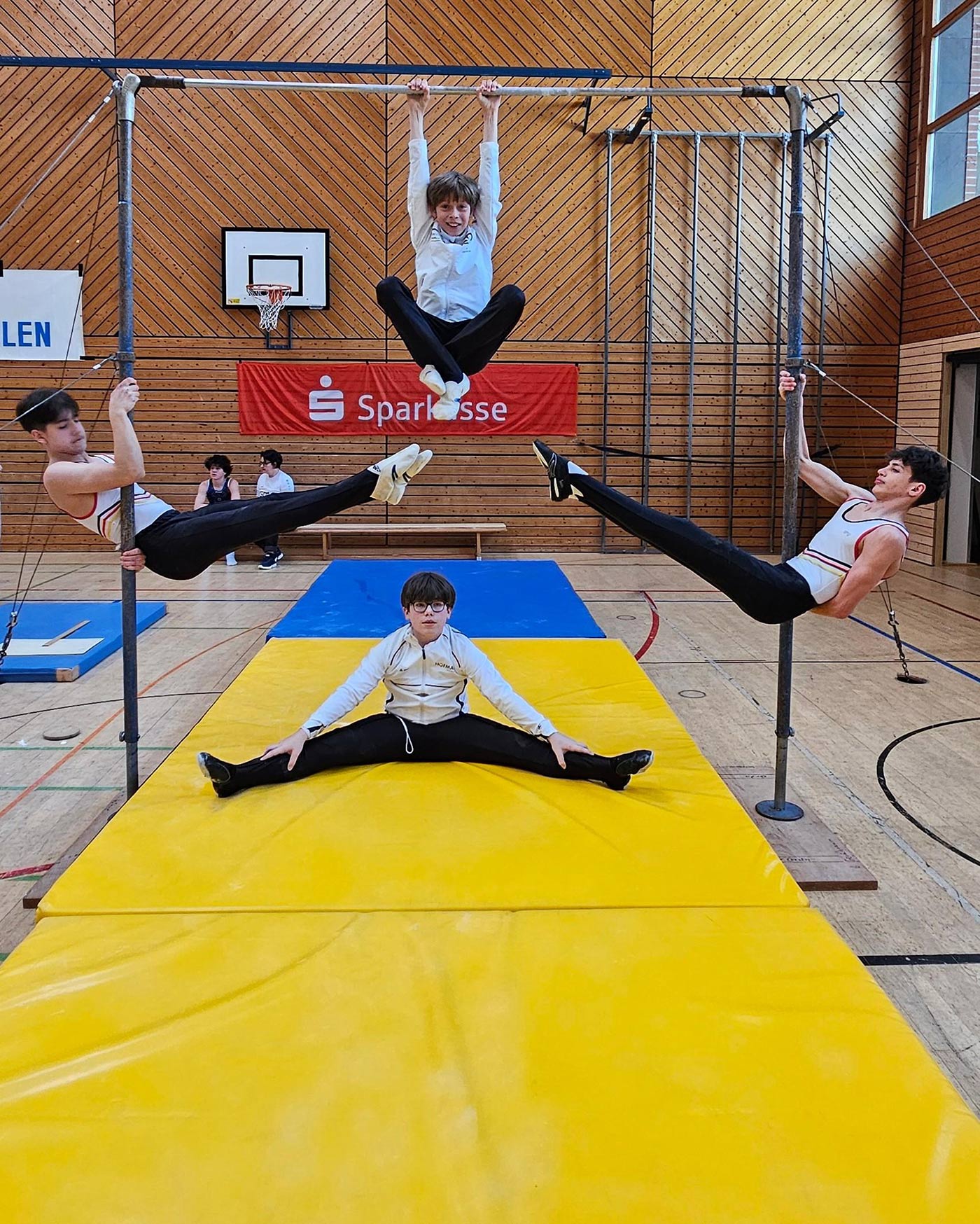 Neben den erfahrenen Turnern Rafael Schnapp und Moritz Häfner aus der 9. Jahrgangsstufe wurde die Mannschaft in diesem Jahr durch die beiden jungen Talente Vincent John (6d) und Felix Pülz (5a) verstärkt. Alle vier Turner sind seit Jahren bei der Turnerschaft Lichtenfels aktiv, die das Team auch in diesem Jahr dankenswerterweise mit Trikots ausstattete.